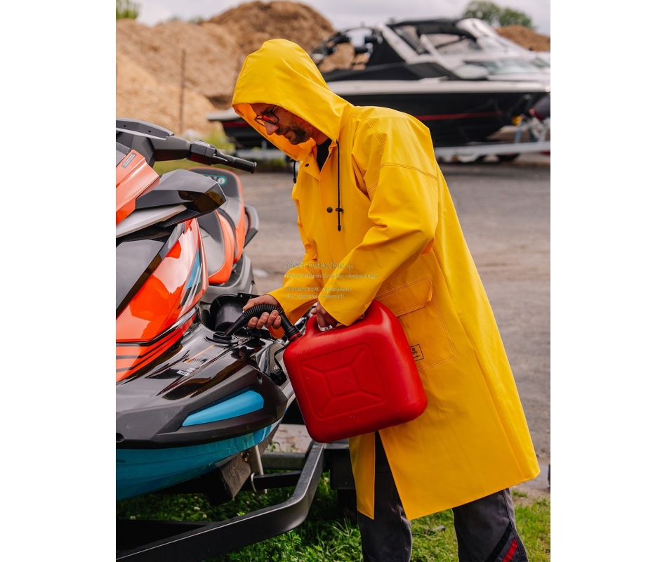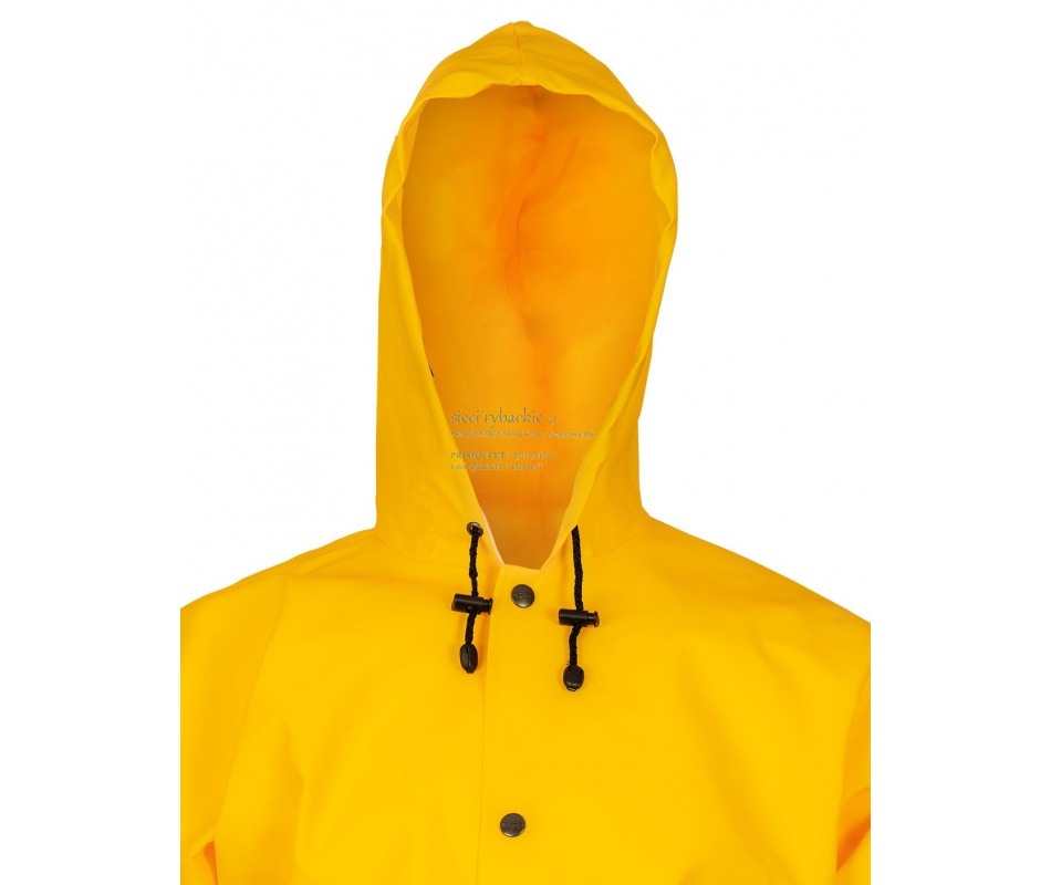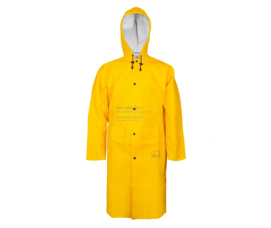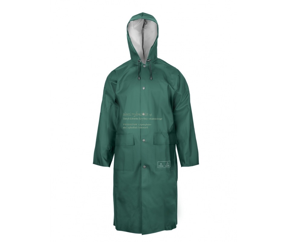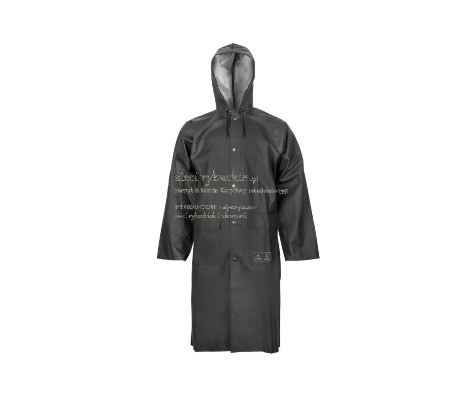 Płaszcz szczególnie przydatny w niesprzyjających warunkach pogodowych. Zwiększona długość chroni uda i kolana przed przemoczeniem. Wykonany techniką obustronnego zgrzewania, co skutecznie zwiększa wytrzymałość szwów. Posiada skuteczne zapięcie na metalowe napy oraz kaptur ze ściągaczem i dwie przednie kieszenie przykryte patkami, zapobiegające przedostawaniu się wody do wewnątrz.